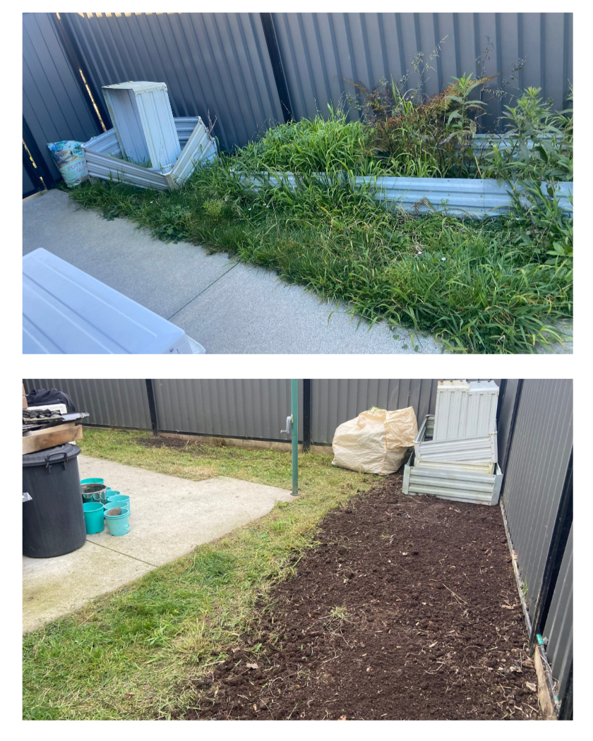 Garden bed clean up including weed removal and dismantling metal planter boxes.